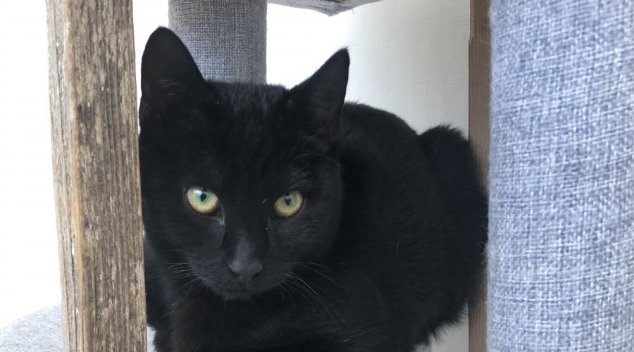 Bonjour, moi c’est Askimo. Je suis un jeune matou de 7 mois. Je peux me montrer timide au début, mais ce n’est que le temps de mieux vous connaître. Une fois en confiance, je deviens un chat joueur et câlin. De petit gabarit, je m’entends bien avec mes congénères. Je sais que les chats noirs n’attirent pas toujours les foules, mais je mérite, moi aussi, de trouver ma famille pour la vie.