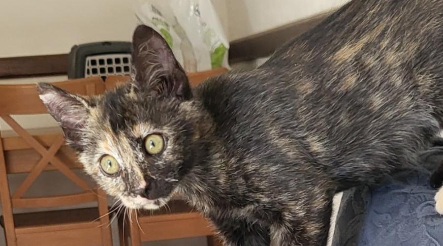 Astra est une magnifique écaille de tortue. Comme sa soeur Amber, elle a beaucoup de caractère. Elle vient se percher sur les épaules, se cache dans le dos lorsqu'on est assis, mais n'apprécie pas encore trop les caresses. Elle cherche le contact mais surtout elle pourrait jouer pendant des heures avec nous si on a une "canne à pêche" avec des rubans ou des plumes au bout.