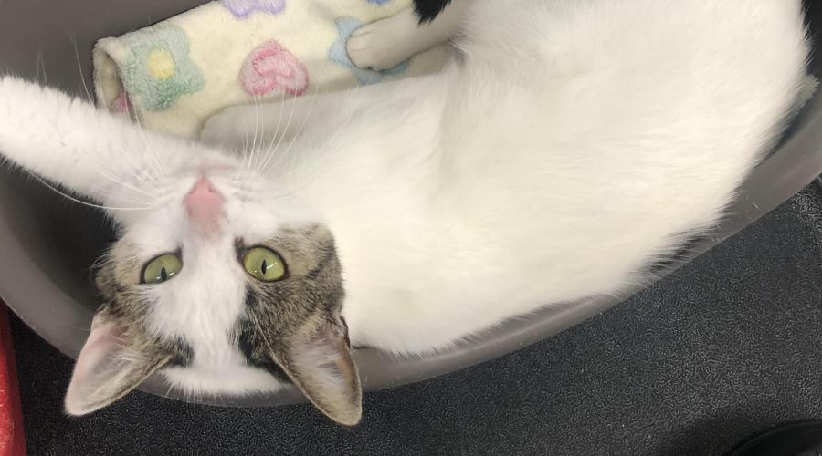Bobine est une chatte de petit gabarit au pelage ultra doux. Elle saura apporter joie et bonheur à une famille avec des enfants.