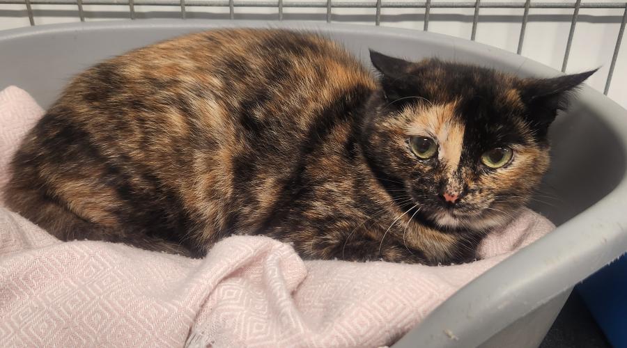 Bonjour, moi c’est Kalipso. Je suis une jeune minette d’un peu moins d’un an. Issue d'un groupe de chat nés dans la rue, j’espère que mon joli minois m’aidera à vite trouver une famille. Pour l’instant, je suis encore mal à l’aise avec mes soigneurs, sans faire preuve d’agressivité.