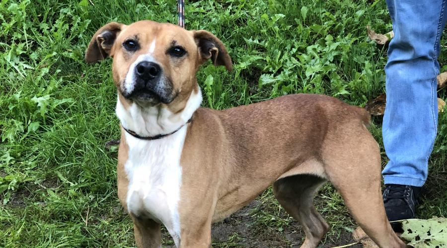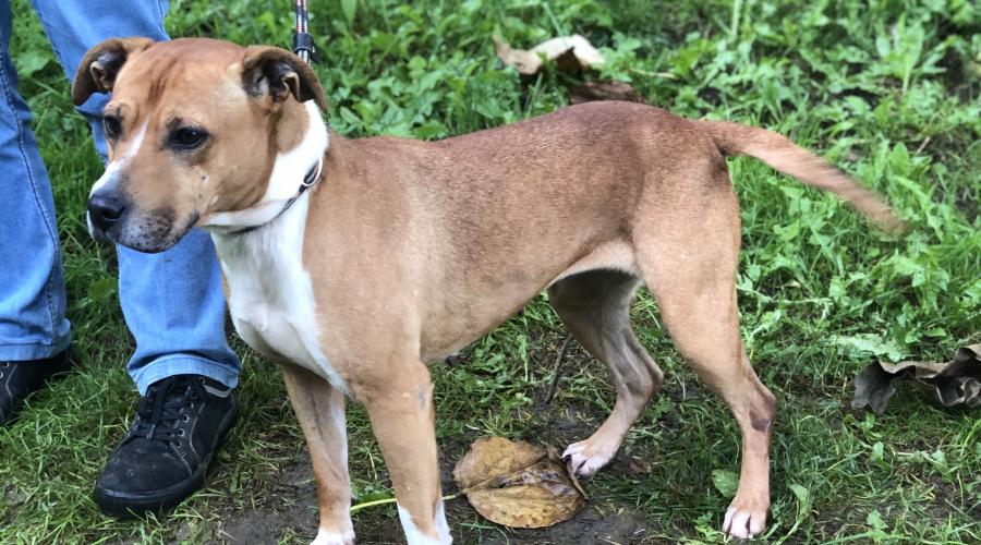 Lola pèse environ 20 kg. C'était une chienne méfiante au début mais qui est de plus en plus à l'aise dans ses pattes. L'éducation doit être continuée comme sur la plupart de nos chiens. Elle est arrivée avec le mâle type dogue que nous avons appelé "Sparky".
