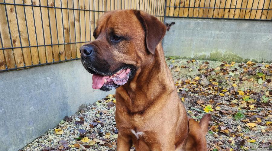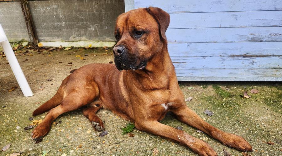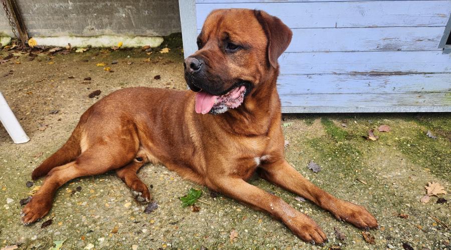Rocky est un très grand chien. Il est impressionnant et il le sait. Une fois le contact prit, il sait se montrer câlin et gentil.