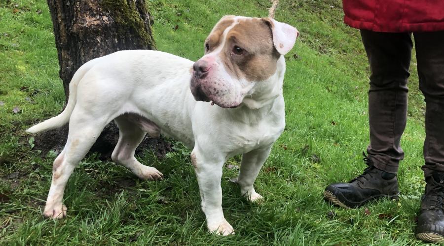 Salut, moi c’est Salto. Je suis un jeune American Bully. J’ai été trouvé errant mais, comme j’étais identifié, je devais retrouver ma famille rapidement. Pourtant, elle n’est jamais venue me chercher. Je suis donc maintenant disponible à l’adoption. Ce qu’il faut savoir sur moi, c’est que je suis adorable avec les humains. Il ne me faut vraiment pas grand-chose pour vous considérer comme un ami.