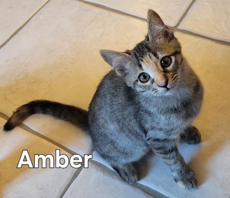 Amber est la râleuse de la fratrie. Elle aime se cacher, découvrir de nouveaux jouets, cartons... Elle est gourmande mais pour l'instant n'apprécie pas trop les câlins. C'est quand elle veut (pas...