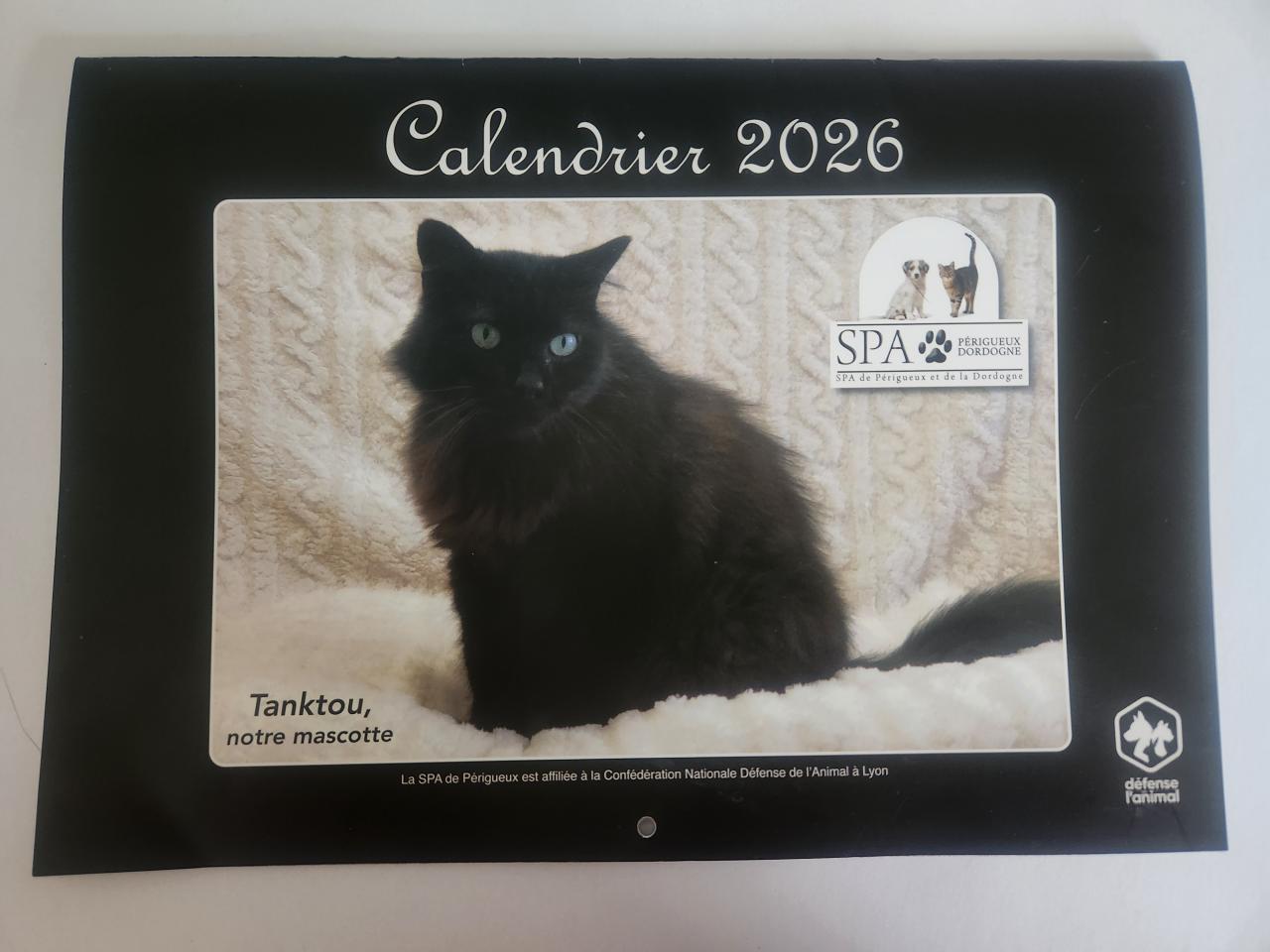Offrez-vous le calendrier 2026 de la SPA de Périgueux. En faisant cet achat, vous ferez non seulement plaisir à vos proches, mais vous contribuerez également à améliorer le bien-être des animaux. Chaque calendrier vendu aide à financer les soins nécessaires pour nos amis à quatre pattes. Il est vendu pour un minimum de 5€. Il est en vente à l'accueil de la SPA et prochainement chez des commerçants et vétérinaire.